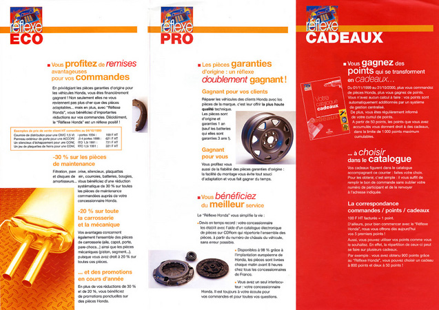 Honda : Dépliant à l'attention du réseau. Objectif vendre plus de pièces de la marque