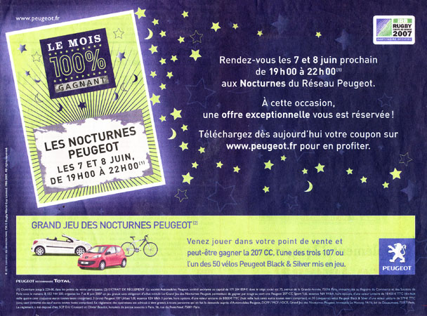 Peugeot : Annonce presse pour les nocturnes du réseau Peugeot